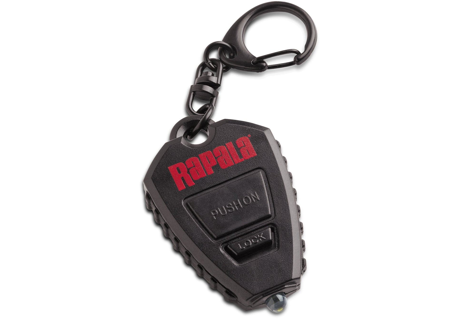 Upgraded design of an essential tool, the Rapala® Fisherman's Pinch Light features excellent lighting power with locking on/off switch. Clasp swivel key chain. 12 lumens and a 9 hour continuous run time. Powered by 2 Lithium coin batteries included.