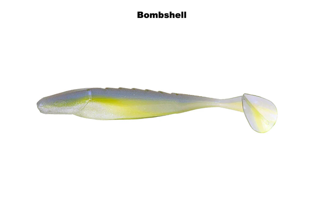 Feel the fish blasting the Shockwave 4.25 when you put on this versatile swim bait. The 4.25” bait has a medium tail swing and the thin tail gets kicking with just the slightest movement in the water. The split belly allows for Texas rigging but has plenty of body to thread on a jig or jig head. Use the Shockwave on a single jig head, on all of your umbrella rig heads, on the back of a chatterbait, on the back of a swim jig, or on a Carolina rig. 5 per pack
